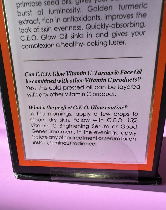 Было частью адвента SPACENKSunday Riley C.E.O Glow Vitamin C + Turmeric Face Oil — это инновационное масло для лица, которое использует силу витамина С и куркумы для придания вашей коже сияния. Это масло разработано чтобы подарить коже комплексное сияние, направленное на выравнивание тона кожи, обеспечение мощной антиоксидантной защиты и улучшение общего состояния кожи.
