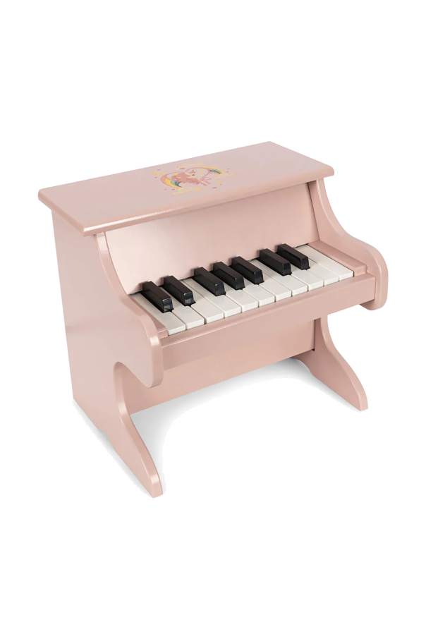 Introduce your child to the enchanting world of music with the exquisite Miniature Piano by the distinguished Danish brand, Konges Sløjd. This elegant instrument, crafted with precision from durable materials such as ABS plastic and FSC™ certified MDF, epitomizes both elegance and functionality. Resplendent in a sophisticated pink hue, this piano boasts a classic grand piano silhouette. The 18 black and white keys are arranged traditionally, creating an authentic musical experience for budding pianists. The top is adorned with a charming motif of two white swans crowned by a heart and the invitation, \"let\'s play together,\" rendering it irresistibly delightful. Designed with two sturdy legs for enhanced stability, this miniature piano is a stylish addition to any child\'s room. It bears quality and safety certifications on its back, underscoring the high standards of its craftsmanship. Why Purchase This Product? Exquisite Design: Aesthetic appeal with a classic shape and enchanting motifs. Durable Construction: Made from high-quality ABS plastic and FSC™ certified MDF. Authentic Experience: Traditional key arrangement for a real piano feel. Stable and Safe: Features sturdy legs and certified safety standards.