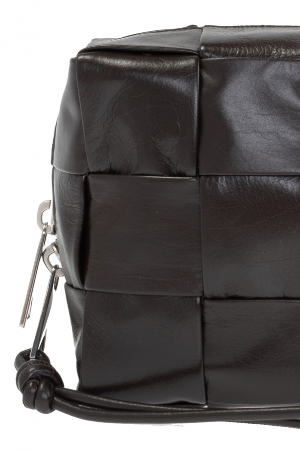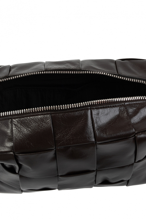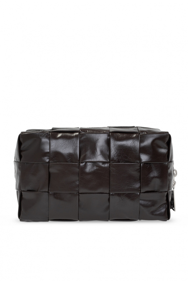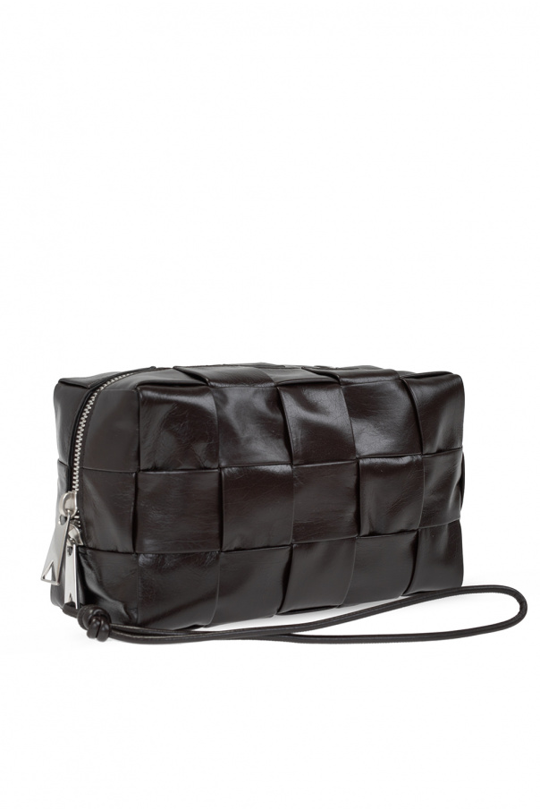 Brown wash bag from Bottega Veneta. Fastened with a two-way zip, this design features the label’s signature Intrecciato weave, wrist strap, silver-tone metal hardware and one internal compartment with one slip pocket.