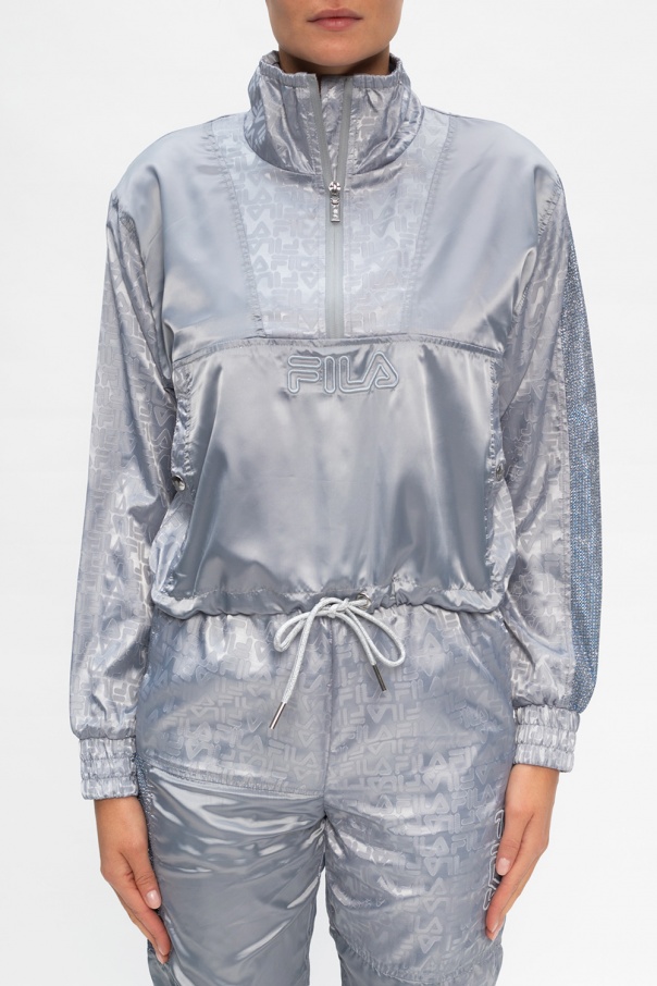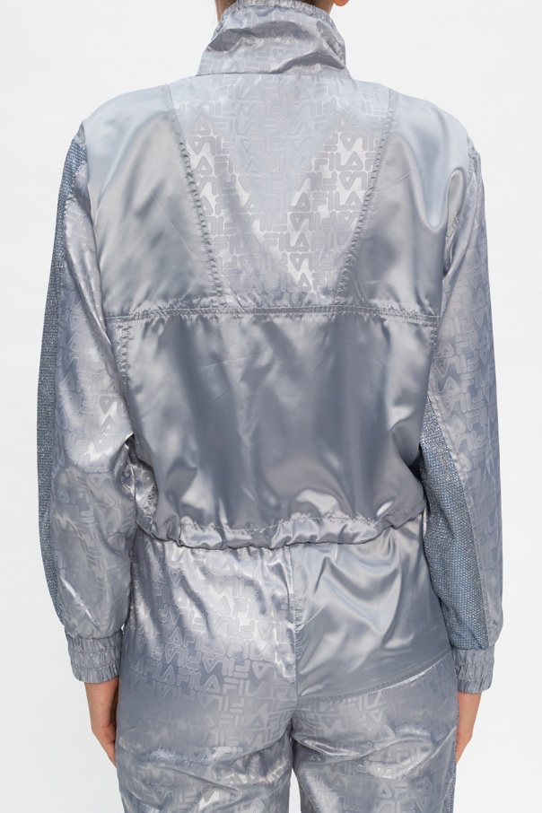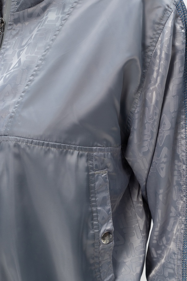 Grey track jacket from Fila. Fastened with a zip, this long sleeve design features a drawstring hem, printed and embroidered logo details and two front snap pockets.