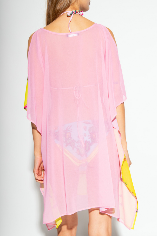 Multicoloured beach dress from Versace. Embellished with the brand's ‘Trésor de la Mer’ print, this style features a round neck and split sleeves. Belt included.