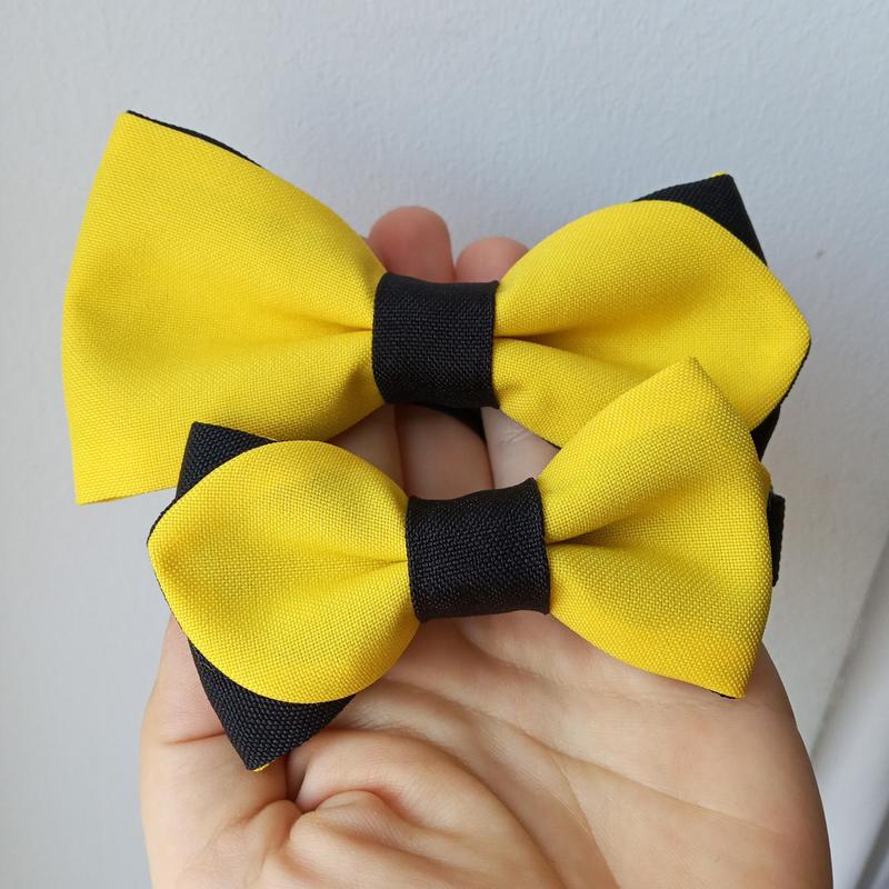 Краватка-метелик жовто-чорний незвичайної форми, ручна робота. Застібка чорна тканинна з металевою фурнітурою або чорна гумка 15 мм з металевою фурнітурою, розмір регулюється. Дивіться інші мої оголошення.