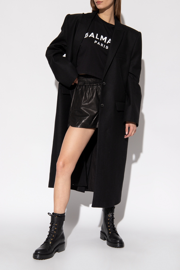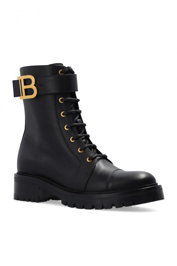 Black high-top sneakers from Balmain. Made of leather, this lace-up pair features a black strap with a gold-tone logo buckle and a black rubber sole.