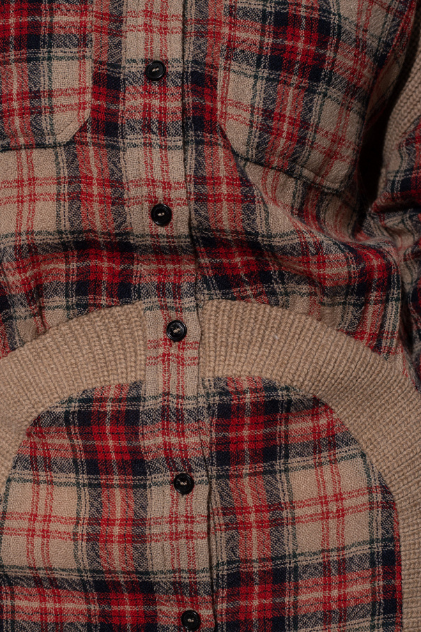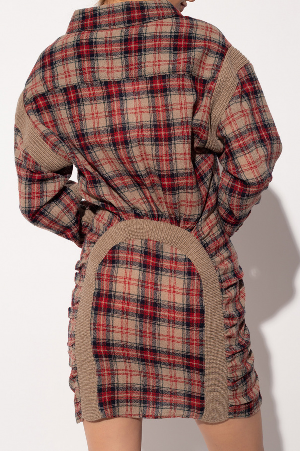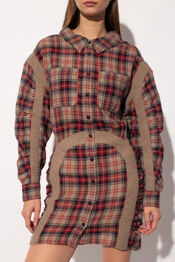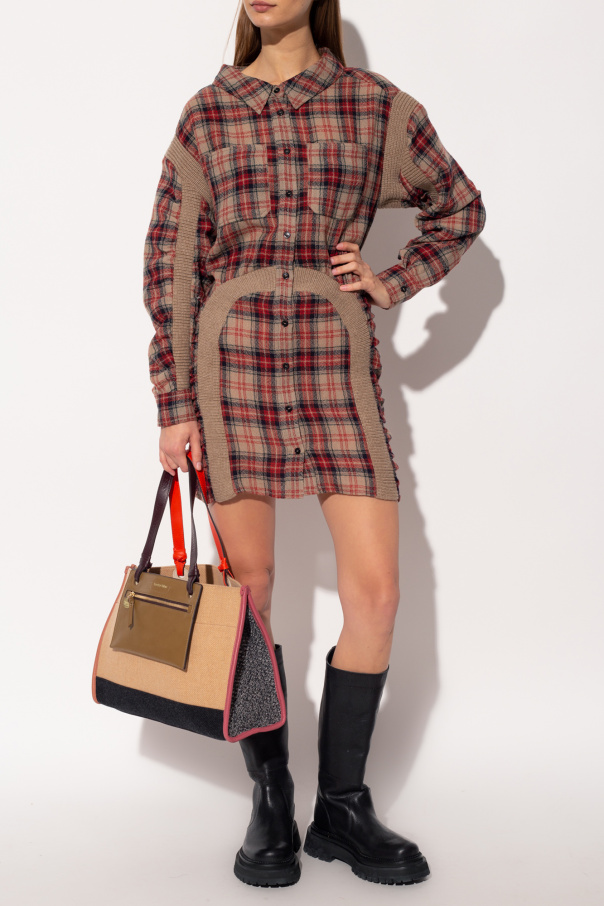 Beige and red shirt dress from Stella McCartney. Made of wool, this garment features button fastenings, check pattern, two slip pockets and long sleeves.