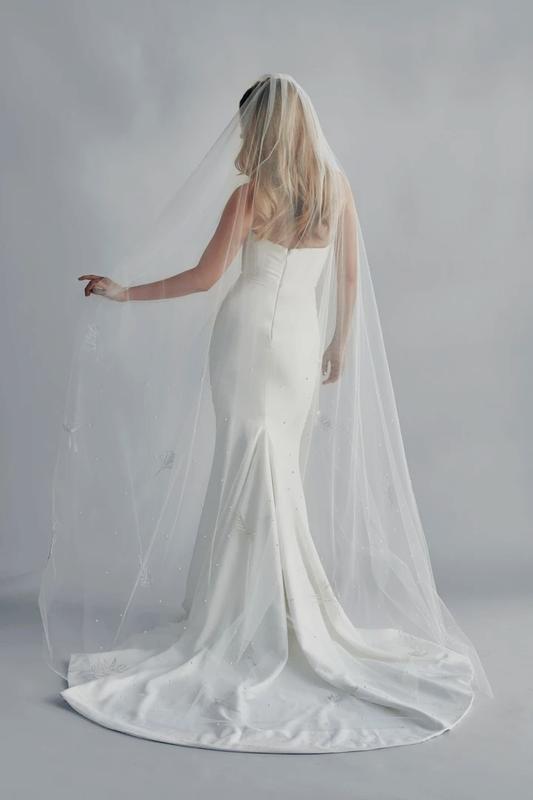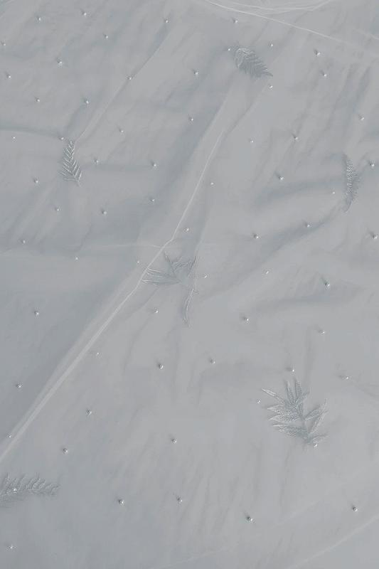 Весільна фата на гребінчику, з перлинками та мереживними листочками - аплікаціями. Оригінальна євросітка(фатин). Довжина фати - 3м, ширина 2м. Листочки та перлинки пришиті вручну, лєскою. В наявності є декілька відтінків, тож пишіть нам, з радістю допоможемо.