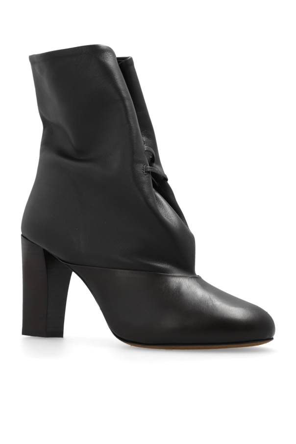 Brown pumps from Lemaire. Made from leather with an almond-shaped toe, this model sits on a brown leather sole and features a drawstring upper.
