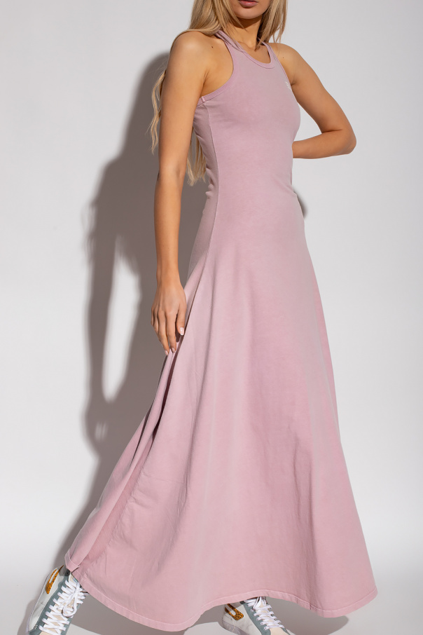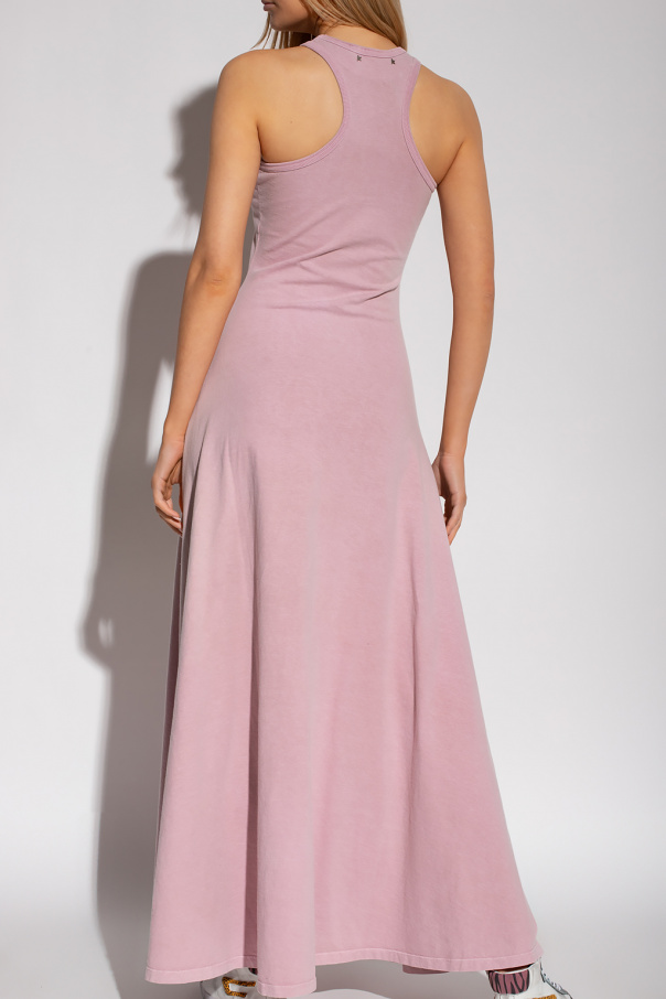 Light pink maxi dress with straps from Golden Goose. Crafted from cotton, this flared design features white lettering prints and two appliqués with the iconic star patch in antique silver-tone.