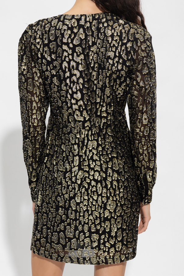 Black dress from Michael Michael Kors. Embellished gold-tone animal embroidery, this style features a V-neckline, a hidden zip fastening and long sleeves with button cuffs.