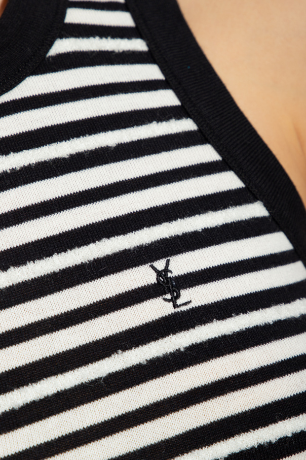 White and black top from Saint Laurent. Made from a cotton blend, this design features a vintage effect, stripe pattern, logo detail and ribbed trims.