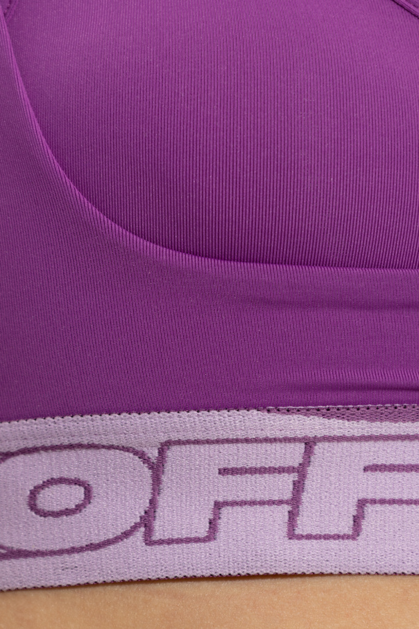 Purple sports bra from Off-White, the ‘Active’ line. This two-layer design features double shoulder straps and an elasticated waistband embroidered with a logo.