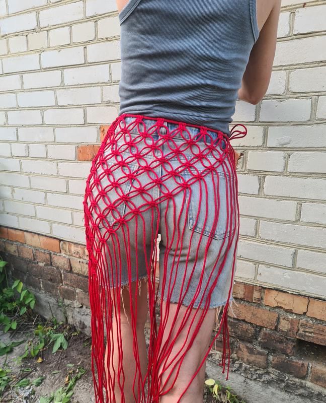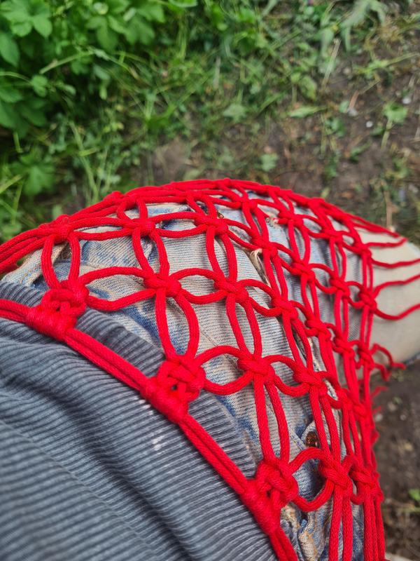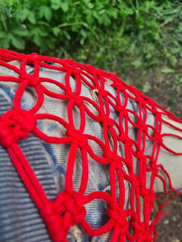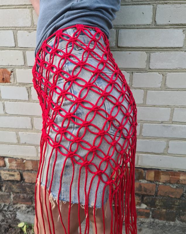 У наявності стильна хустка-сітка (парео) макраме у червоному кольорі. Ідеально підійде як на пляж, так і для стильних прогулянок містом. Розмір onesize. Виконана зі 100% бавовняного шнура. Інші кольори під замовлення.