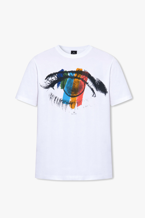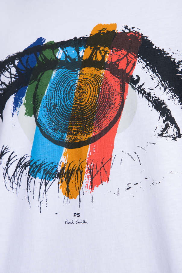 White crewneck T-shirt from PS Paul Smith. Made of cotton, this short sleeve design is decorated with a multicolored print and logo.