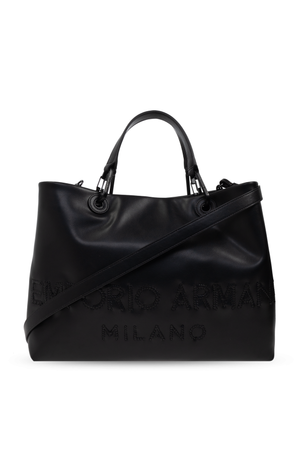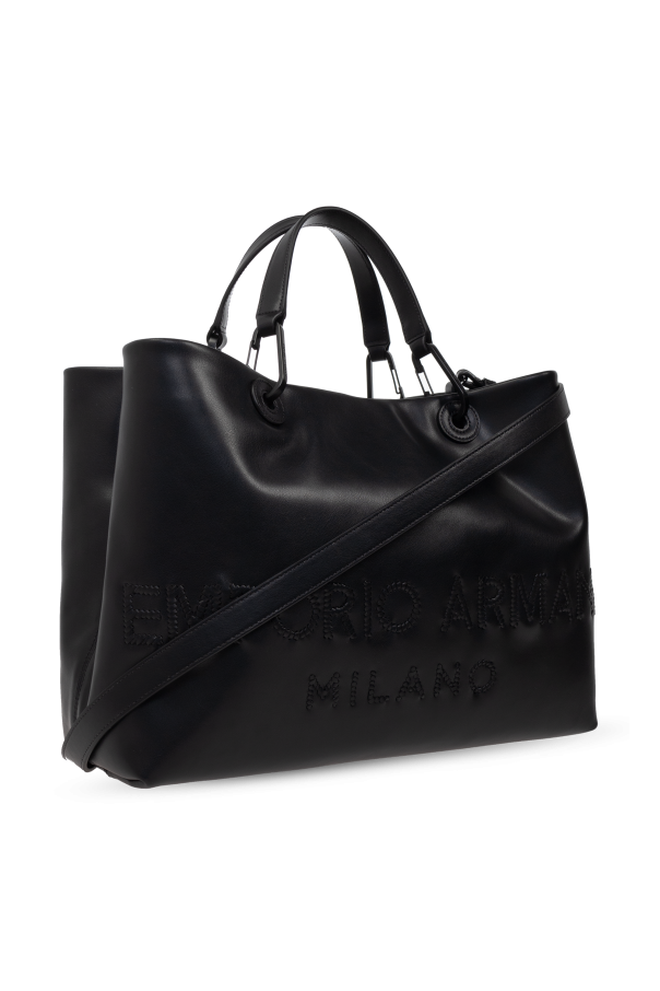Introducing the Emporio Armani Shopper Bag, a testament to timeless elegance and supreme functionality. Meticulously crafted from luxurious black leather, this bag exudes sophistication and a high-end allure. The classic rectangular silhouette offers ample space, making it an ideal companion for both everyday endeavors and formal occasions. Adorned with a debossed brand insignia on the front, the bag radiates exclusivity. The dual short handles and an adjustable shoulder strap provide versatile carrying options, catering to your personal style preferences. Inside, the bag is lined with a light-hued fabric and features a secure zip pocket, enhancing its practicality. Stylish metal accents, including rivets on the handles, impart a contemporary charm. The bag\'s closure is secured with a sophisticated karabiner clasp, and an internal compartment and detachable zip pouch serve as an additional divider, ensuring organizational ease. Why Choose This Product? Crafted by the renowned Emporio Armani, synonymous with luxury and innovation. Constructed from premium black leather for a polished and durable finish. Features versatile carrying options with short handles and a long shoulder strap. Includes an internal zip pocket and detachable pouch for optimal organization. Elegant metal details add a modern touch to a classic design.