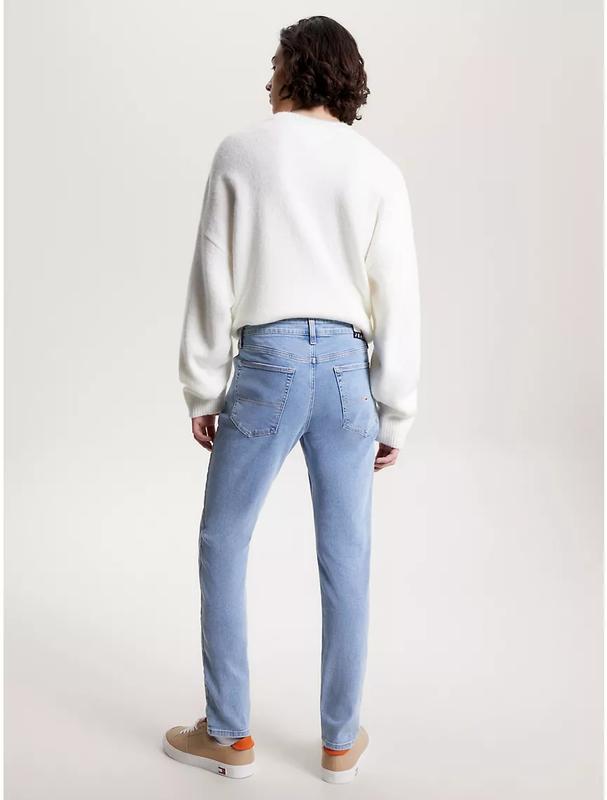 Классическая модель с пятью карманами, из плотной джинсовой ткани.