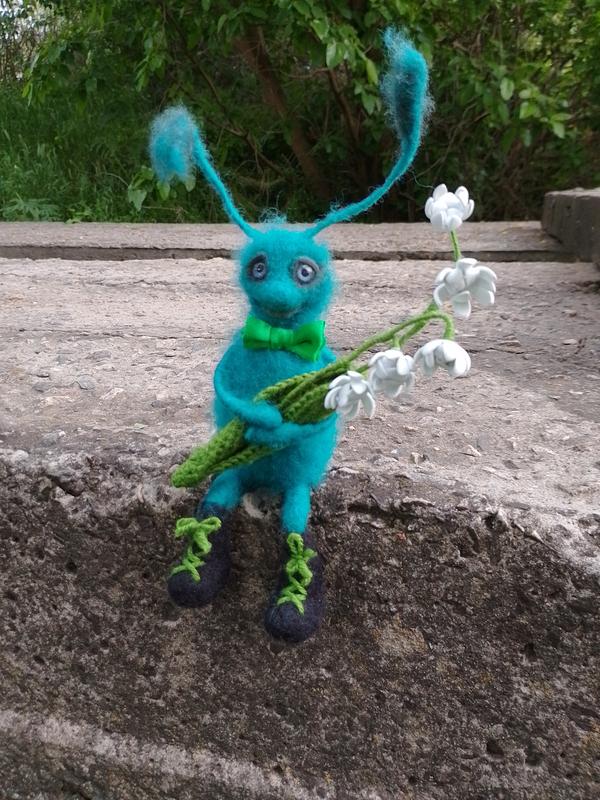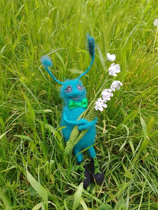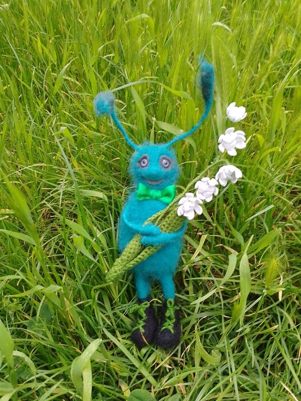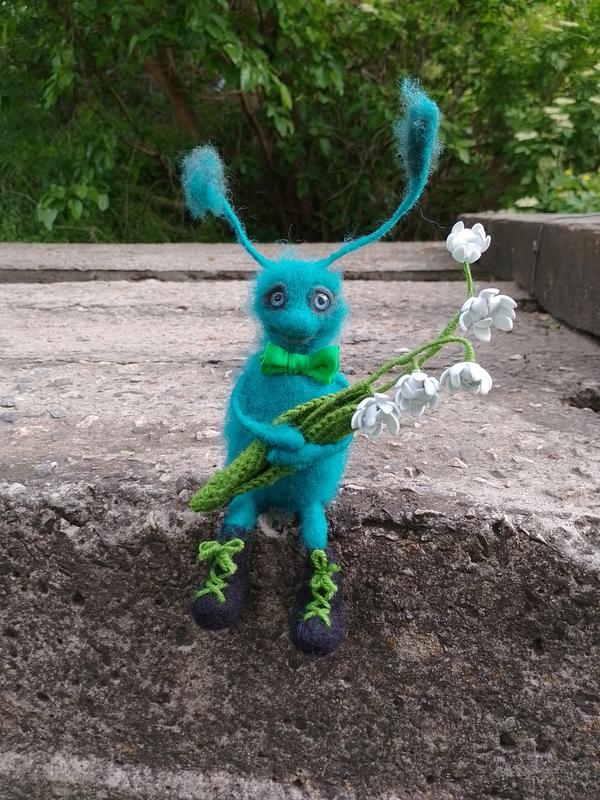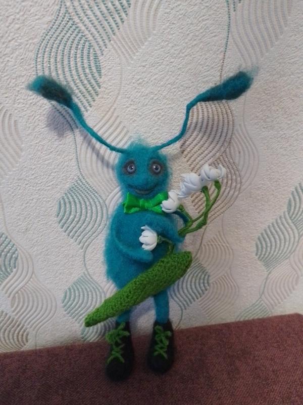 Валян и таракан, выполненный в технике сухого валения из натуральной шерсти.