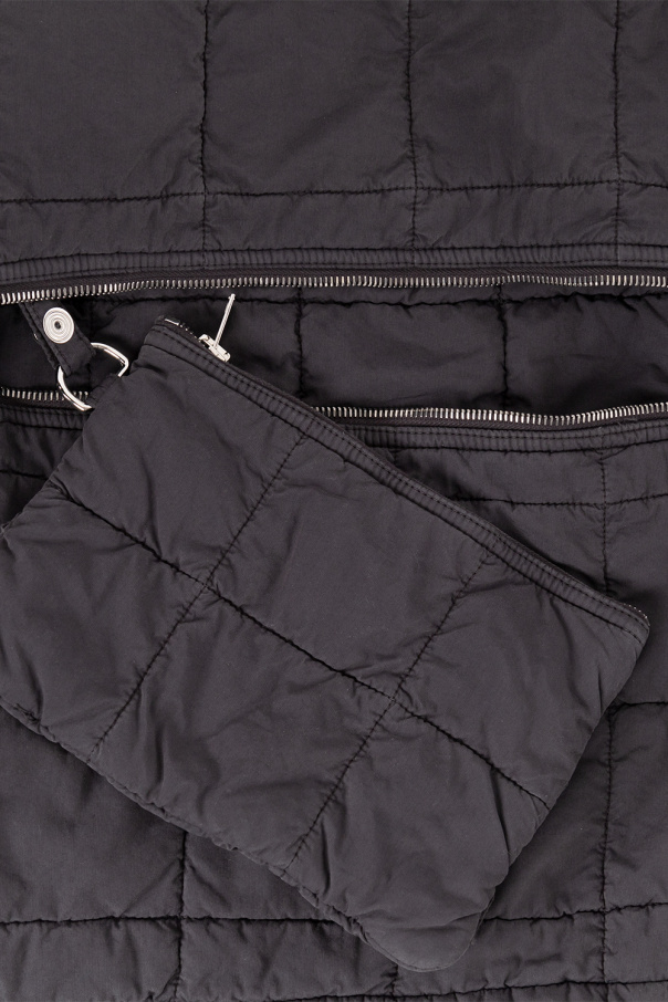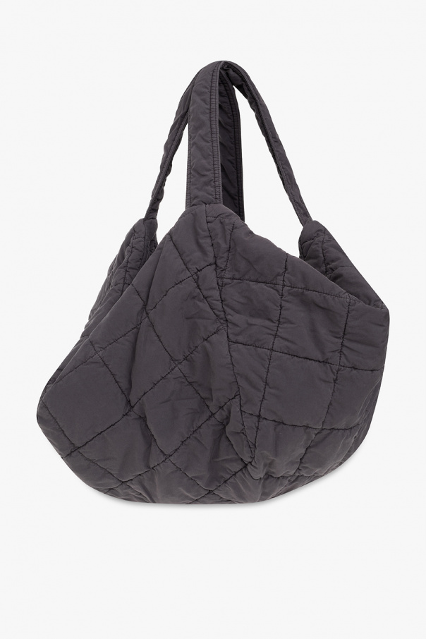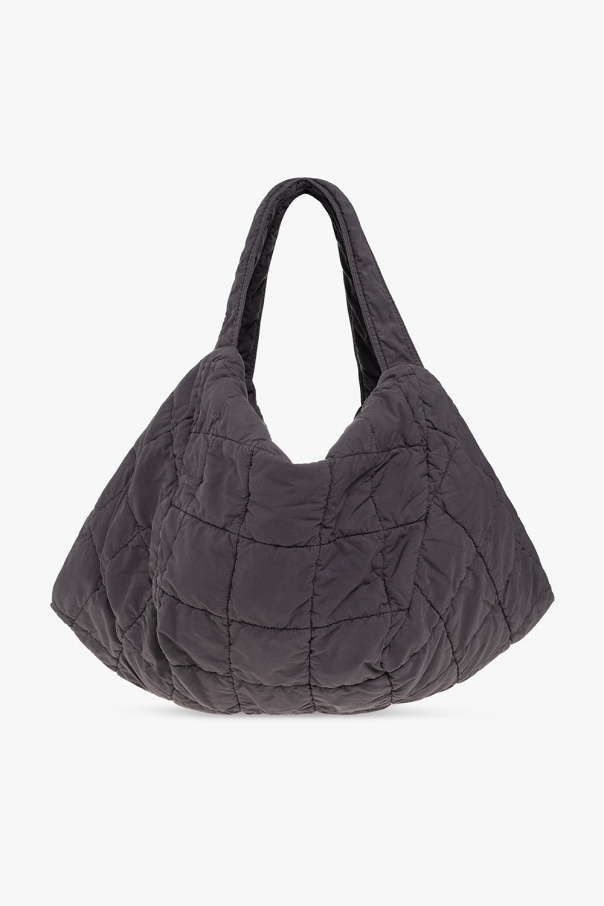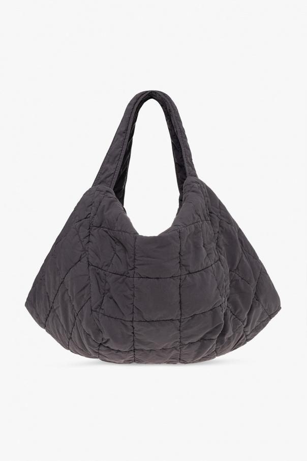 Dark grey quilted shoulder bag from Lemaire. Fastened with a zip, this model is complete with two half-round straps, silver-tone metal hardware and one internal compartment with a detachable zipped pouch.