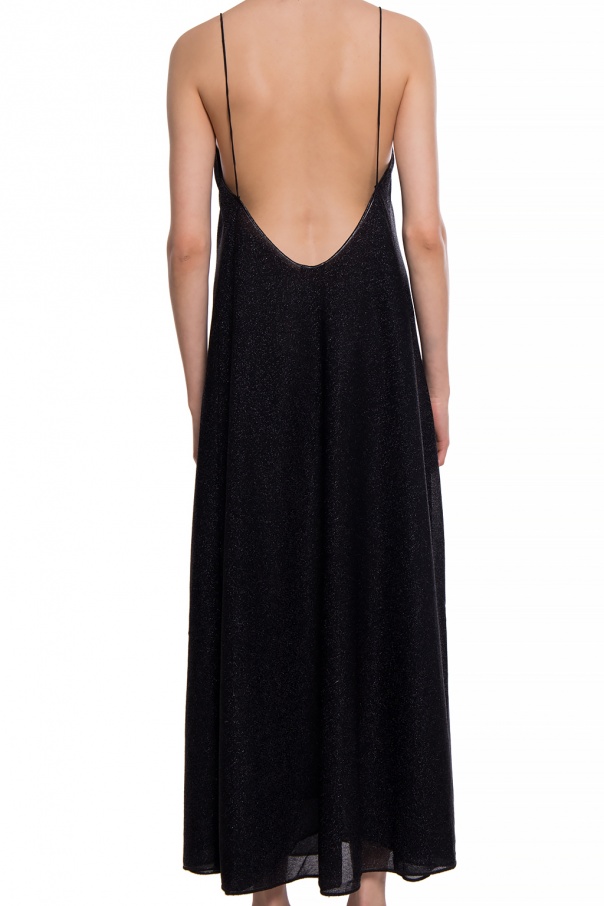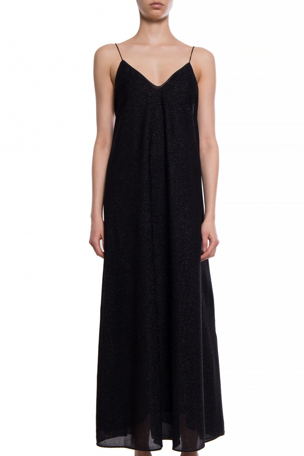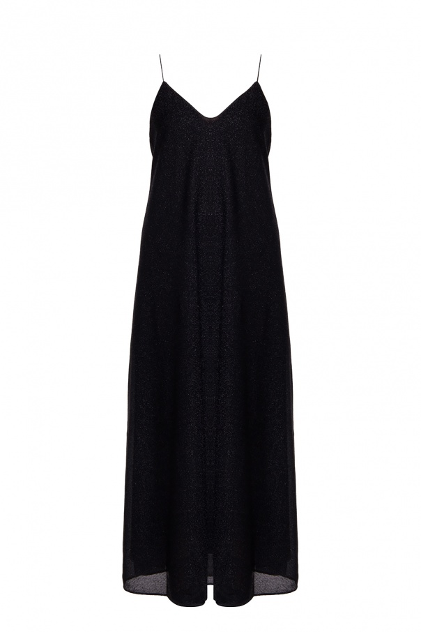 Black two-layered slip dress from Oseree. Trimmed with a metallic fiber.