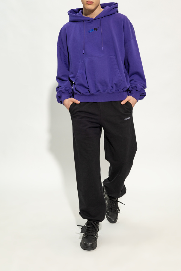 Black ‘Out Of Office’ sneakers from Off-White. Crafted from leather and fabric, this lace-up model sits on a black rubber sole and showcases a logo patch, removable tag, contrasting white stitching details, perforated toe and the brand\'s signature arrow embroidered on the side.