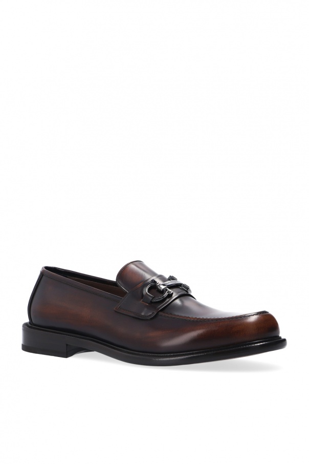 Dark brown ‘Rodney’ moccasins from Salvatore Ferragamo. Made of calf leather. Decorated with a strap featuring the ‘Gancini’ motif. Brown leather sole.