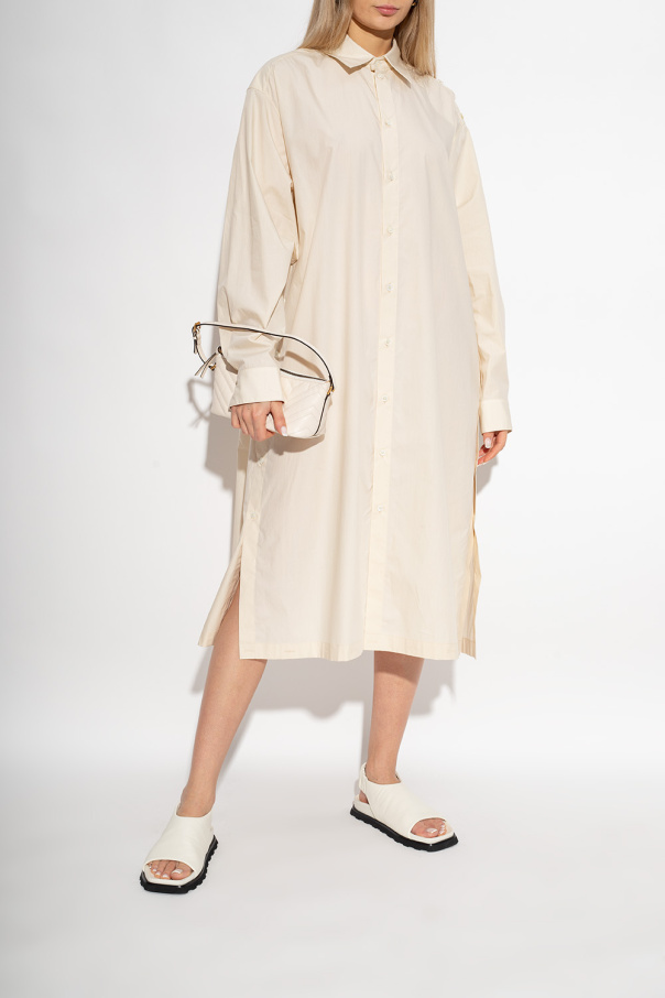 White sandals from Proenza Schouler. Made of leather, this model sits on a black rubber sole and features a square toe and a back elastic strap.