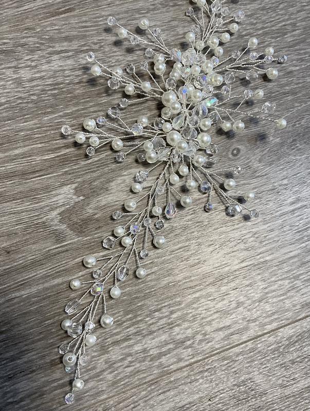 Розкішна гілочка ручної роботи - вишукане доповнення сучасного образу нареченої. Виготовлена із якісних матеріалів, дріт світло-срібного кольору, не темніє!! з часом. Перлини молочного кольору, кришталь прозорий. Можливе виготовлення на замовлення іншої довжини чи другого дизайну. Дивіться також інші мої прикраси в оголошеннях.