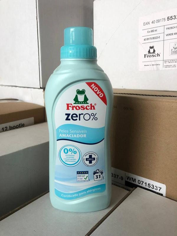 Щоб пом'якшити тканини та зробити їх нежними на ощупь, зверніть увагу на кондиціонер для білизни Frosch Zero Sensitiv. Формула ідеально підходить для догляду за промовами людей із чутливою шкірою та алергіків. Активні компоненти згладжують волокна тканини, мінімізуючи вірогідність виникнення подразнень. До складу входить мочевина, яка робить речі м'якими та полегшує прасування.