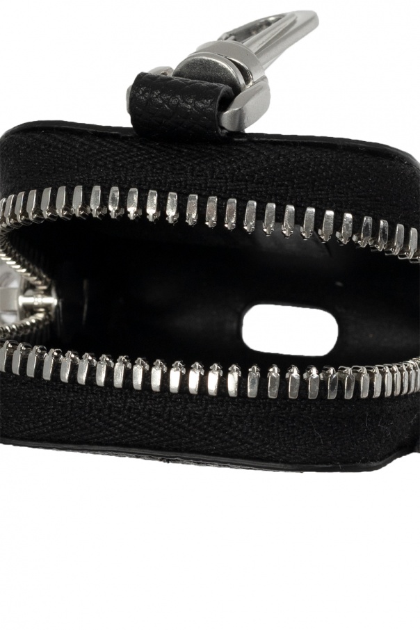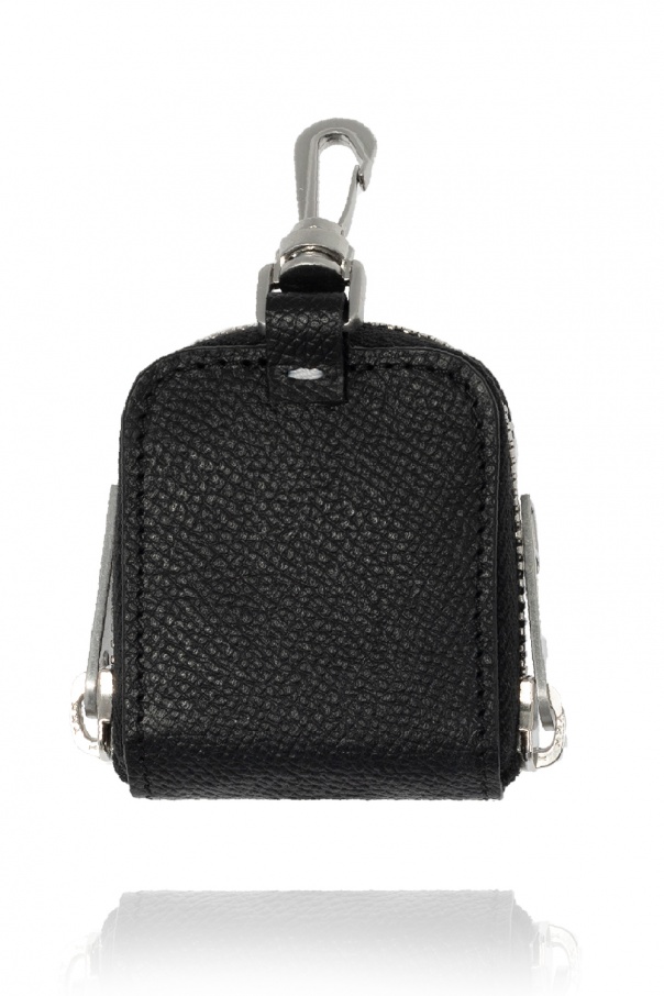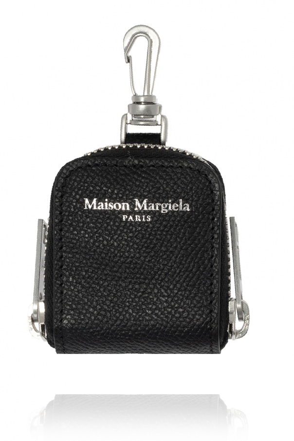 Black headphones case from Maison Margiela. Crafted from leather, this design features an embossed logo in silver-tone, two-way zip fastening and a strap with a snap hook.