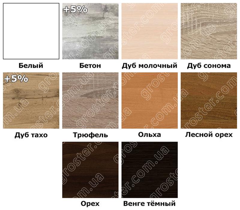 - Цвет ДСП: Белый, Бетон (+5% к цене), Дуб молочный, Дуб сонома, Дуб тахо (+5%), Трюфель, Ольха, Яблоня, Лесной орех, Темный венге, Орех.Ознакомьтесь с условиями оплаты и доставки здесь -
