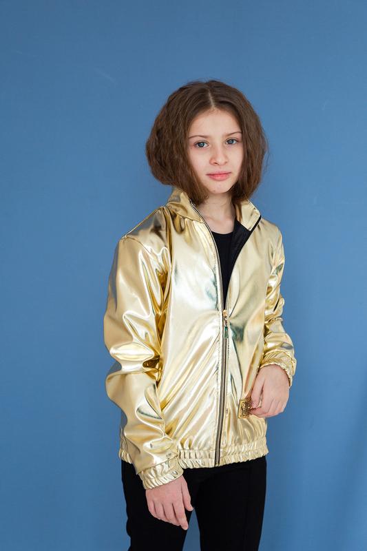Вітровка шкіряна для дівчинки, на підкладці, з капюшоном, золото, SmileTime