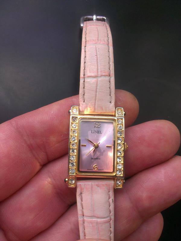 Красивые женские часы, заводской Китай, 90е, куплены и привезены из Америки. Корпус часов в идеале, внутри качественный Японский механизм от Miota, идут точно без нареканий, из нюансов- в скором времени потребуется замена ремешка. Размер часов 3х2 сантиметра, на запястье 15-18.5 сантиметра.