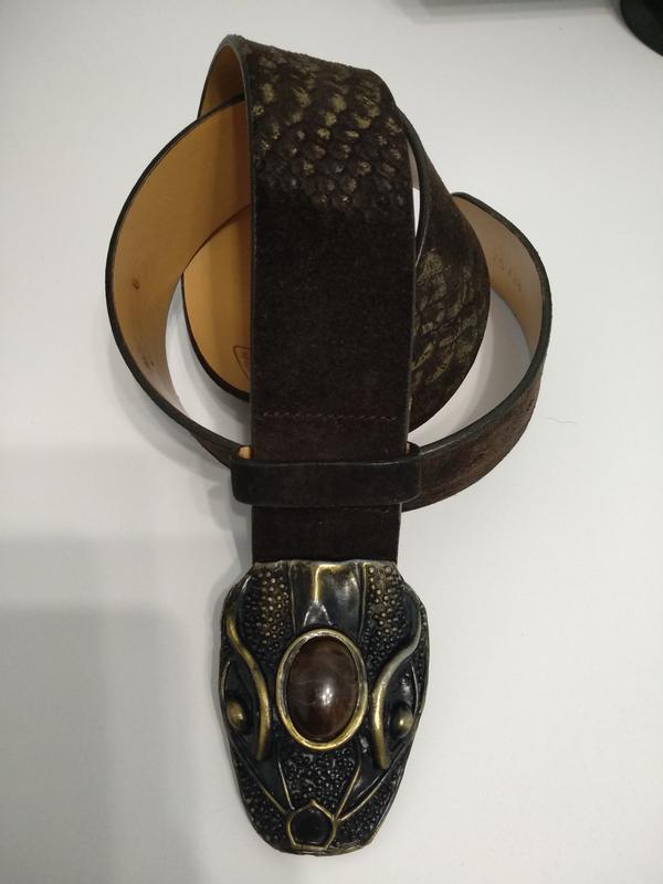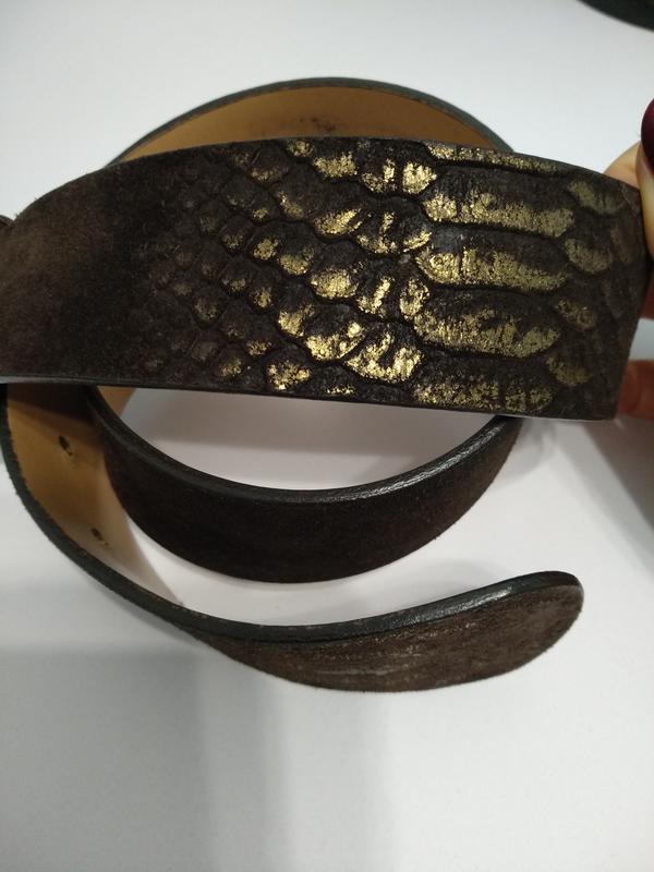 пояс ремень натуральная замша с тиснением коричневый цвет с позолотой