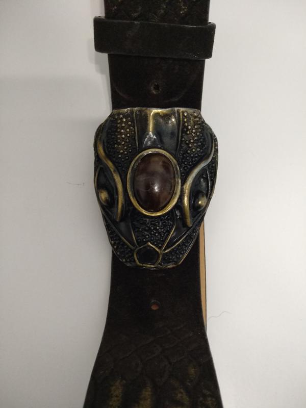 Пряжка латунная голова змеи по центру вставлена карбишон (возможно натуральный камень) размер 7.5*5.5 смСостояние: ИдеальноеЦвет:- Золотистый