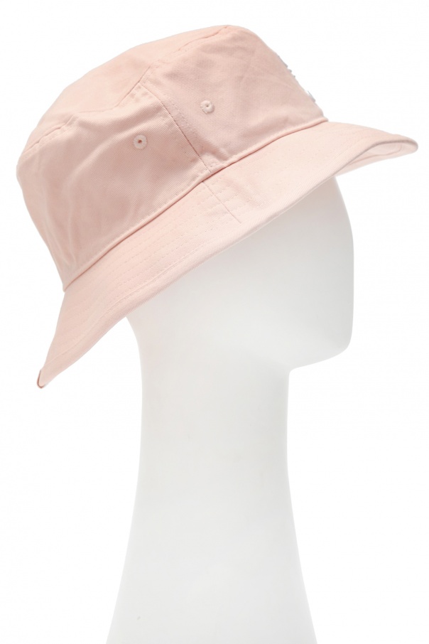 Light pink bucket hat from ADIDAS Originals. Crafted from cotton, this hat comes decorated with an embroidered logo in white.