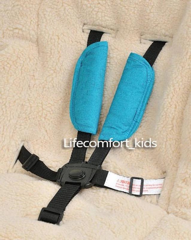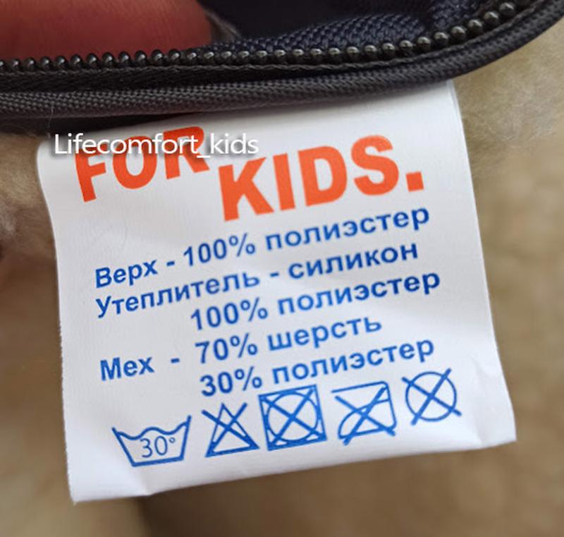 Внутри конверта нашита плотная плащевая ткань, чтоб не запачкать овчину грязными ножками.