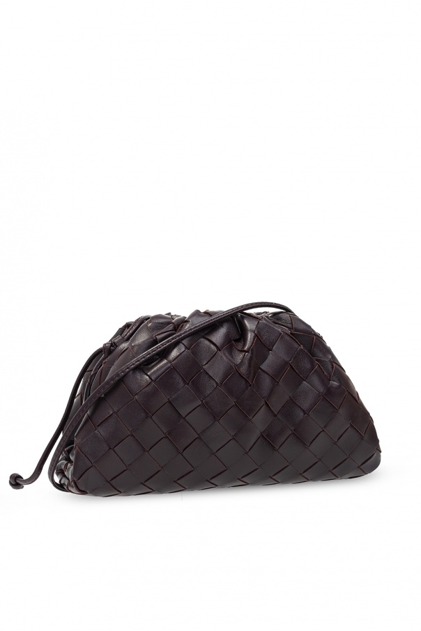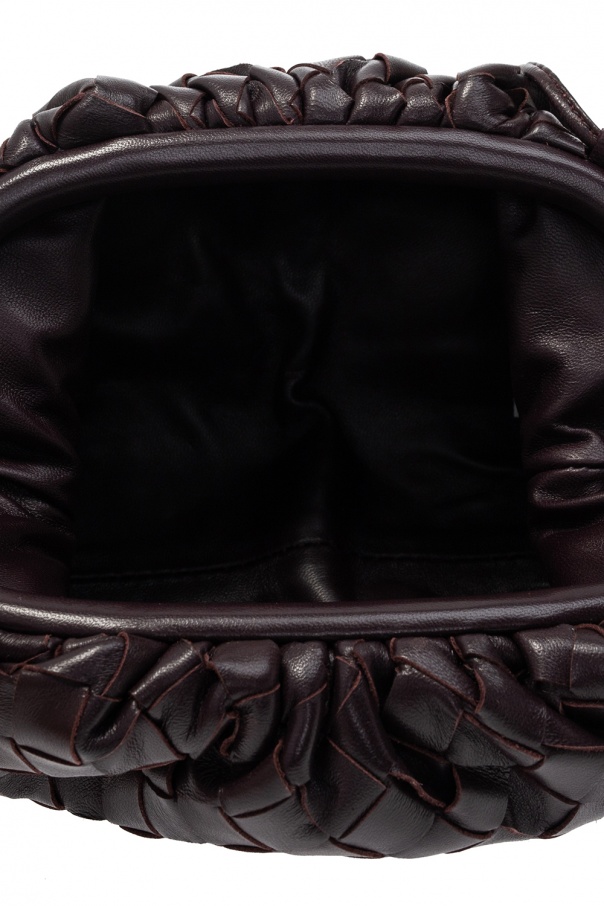 Purple ‘The Mini Pouch’ shoulder bag from Bottega Veneta. Crafted from calf leather with the signature Intrecciato weave, this design features a magnetic snap fastening, leather shoulder strap and one internal compartment.