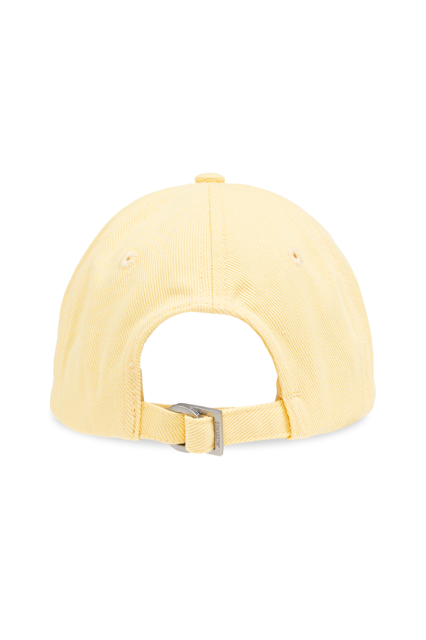 Introducing the exquisite Jacquemus Yellow Cap, a sublime creation from the illustrious designer Simon Porte Jacquemus. This masterpiece is a harmonious blend of elegance and functionality, meticulously crafted to grace any wardrobe. Adorned in a pastel yellow hue, this cap is fabricated from delicately textured cotton, offering both comfort and sophistication. The metallic \"JACQUEMUS\" logo emblazoned on the front adds a touch of luxury, underscoring the brand\'s prestige. Designed in a classic shape with a gently curved visor and six panels, this cap epitomizes timeless style. The adjustable metal clasp at the back ensures a perfect fit, making it a versatile choice for both men and women. Why Choose This Product? Crafted from high-quality cotton for optimal comfort. Features a distinctive metallic logo for added elegance. Unisex design suitable for all. Adjustable fit for personalized comfort.