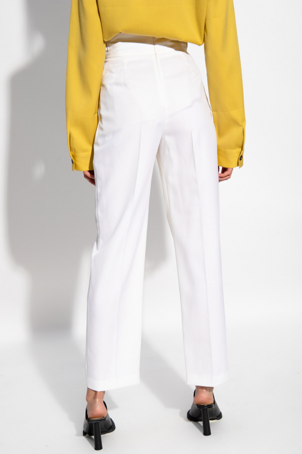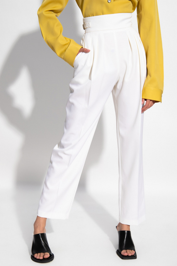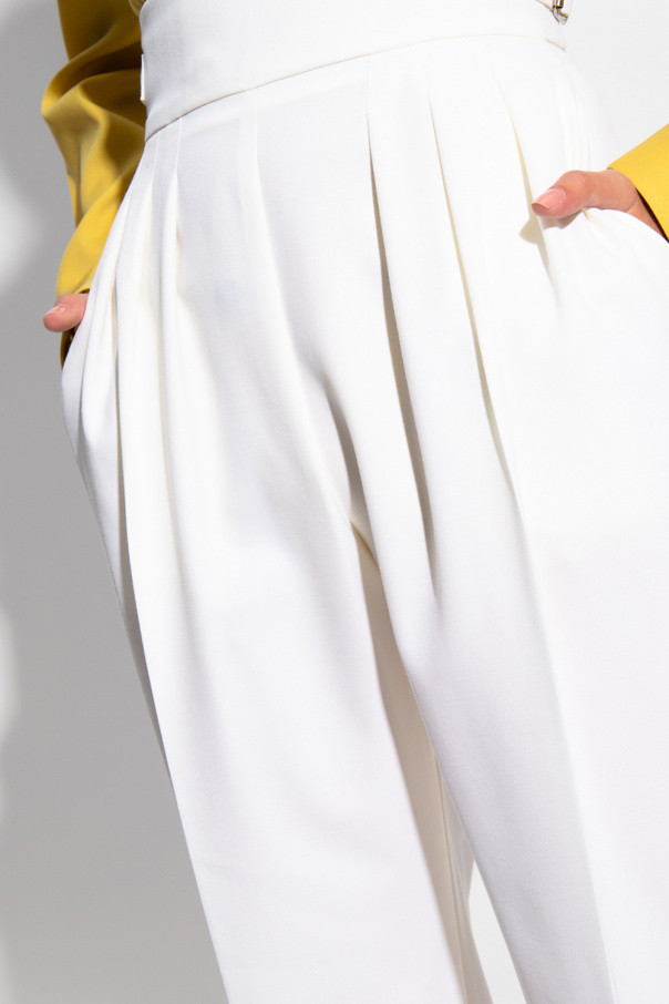 Cream pleat-front trousers from Iro. Made of wool, this pair falls down with slightly tapered legs and features a back zip fastening and two slip pockets.