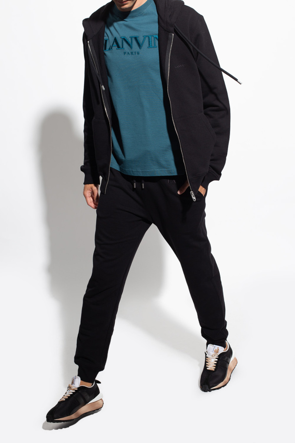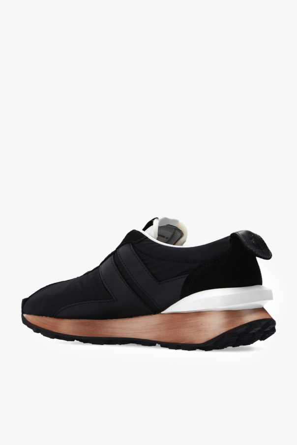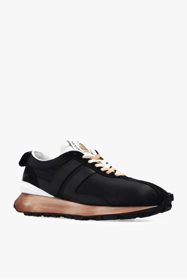 Black ‘Bumpr’ sneakers from Lanvin. Trimmed with leather, this lace-up model sits on black and brown rubber sole and showcases a branded tongue patch.
