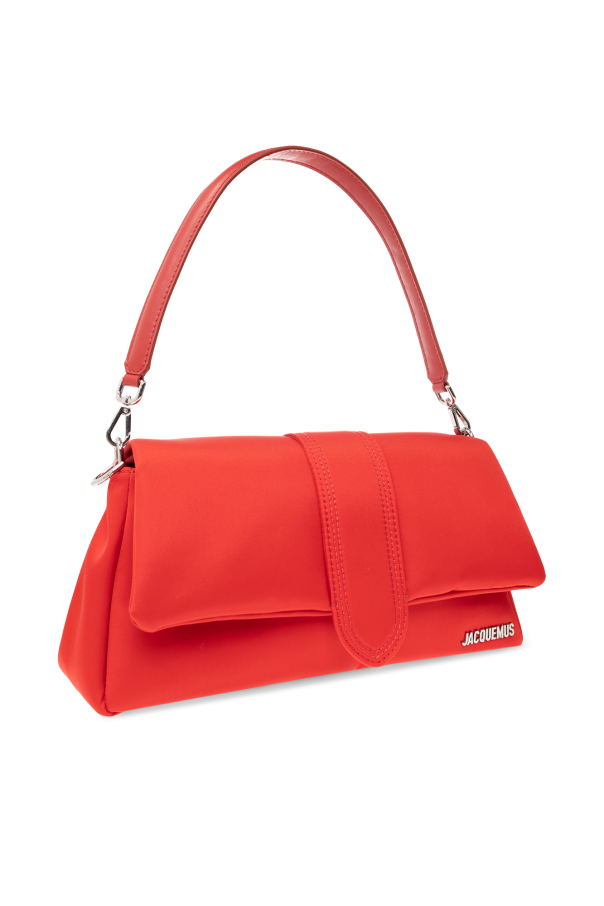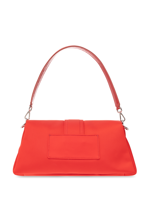 Red ‘Le Bambimou’ shoulder bag from Jacquemus. Crafted from fabric with leather trims, this design features a magnetic snap, metal logo detail, back pocket, detachable handle and adjustable strap, silver-tone metal hardware and one internal compartment with one card slot.