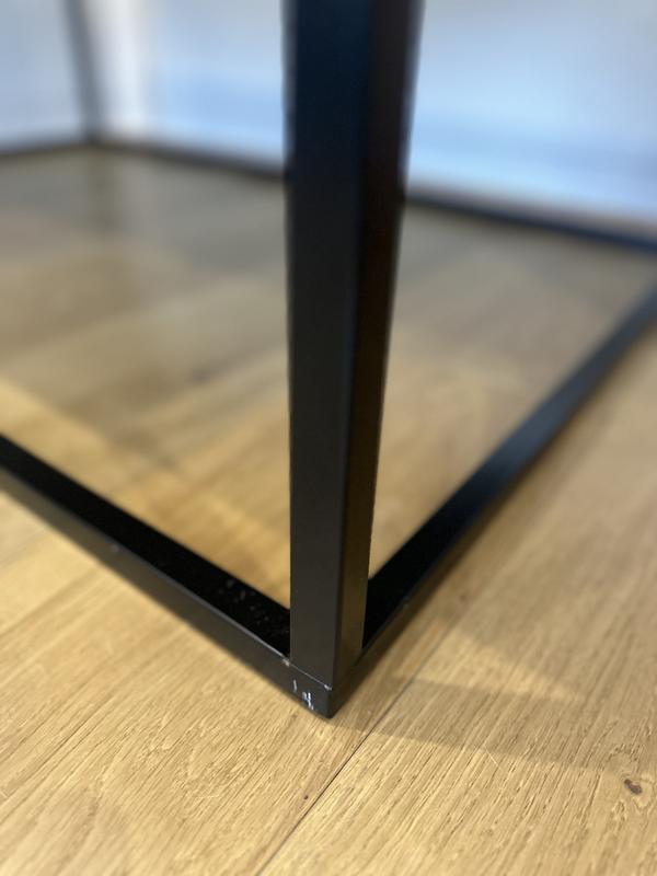 Цей кавовий столик використовувався, але знаходиться в чудовому стані. Він добре доглянутий і має мінімальні сліди зносу, зокрема невеликі пошкодження на кутах стільниці. Поверхня з виглядом під бетон не має значних подряпин або плям, а металева рама цілісна, без іржі чи пошкоджень.