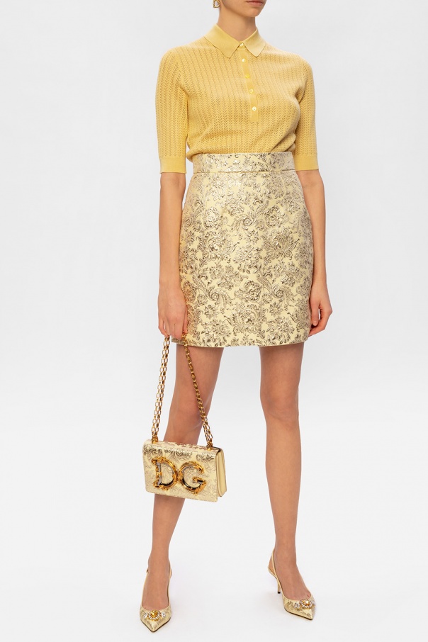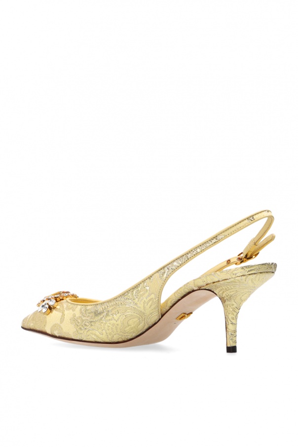 Gold-tone stiletto pumps from Dolce & Gabbana. Set on a beige leather sole, this design features a silver-tone and yellow floral appliqué and a buckle fastening.