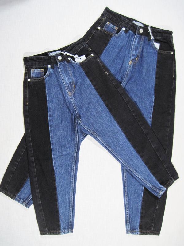 Оригинальные и стильные модные комбинированные джинсы МОМы с высокой талией для девочки.