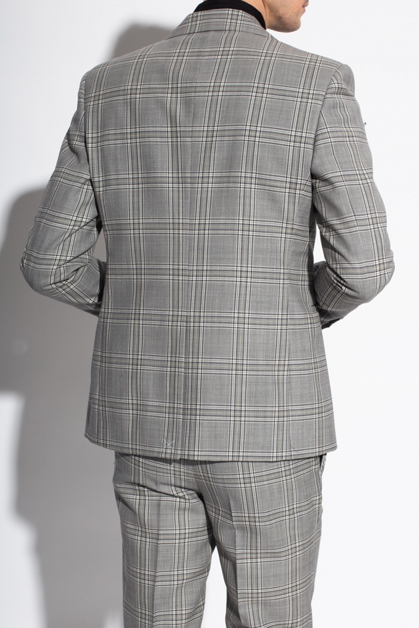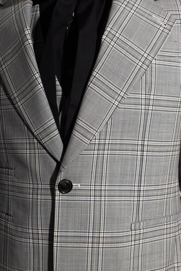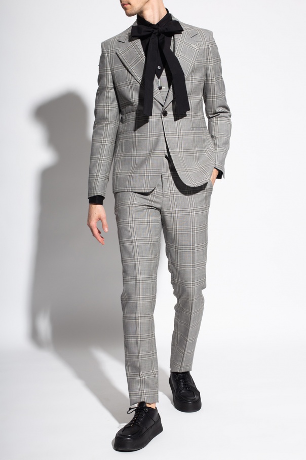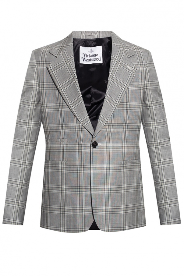 Grey, white and black blazer with notch lapels from Vivienne Westwood. Crafted from wool, this design features button fastenings, check pattern, three front slip pockets and a single rear vent.