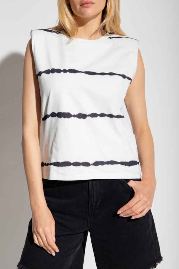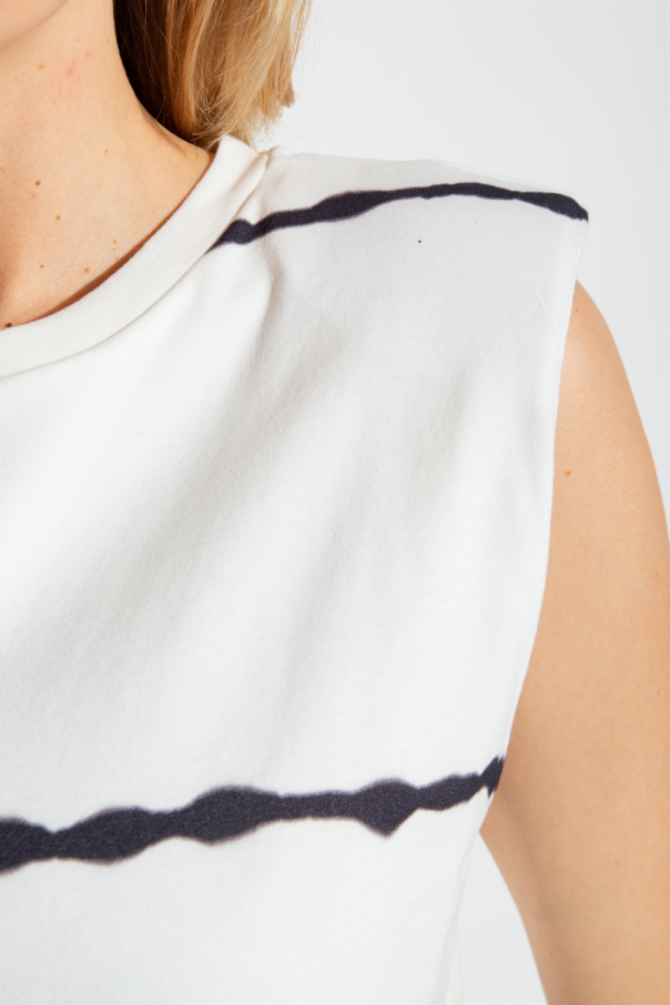 White ‘Mika’ top from AllSaints. Made of cotton, this style features a sleeveless silhouette.