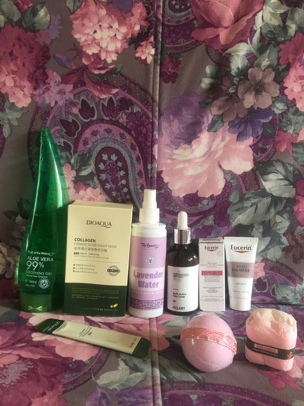 Продам набор косметики (в коробке Bioaoua -5 шт.,лавандовая вода -пов.пляшечки,ало-не совсем полная, для волос- неполная, низких двух -целые