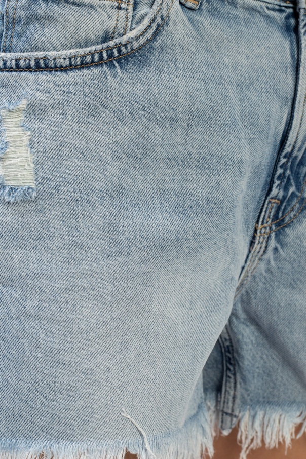 Light blue ‘Yanni’ denim shorts from AllSaints. Fastened with a zip and button, this raw cut edge design features three slip pockets on the front and two at the back.