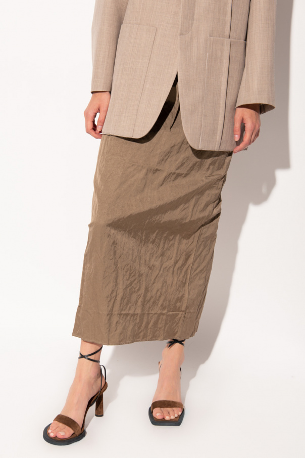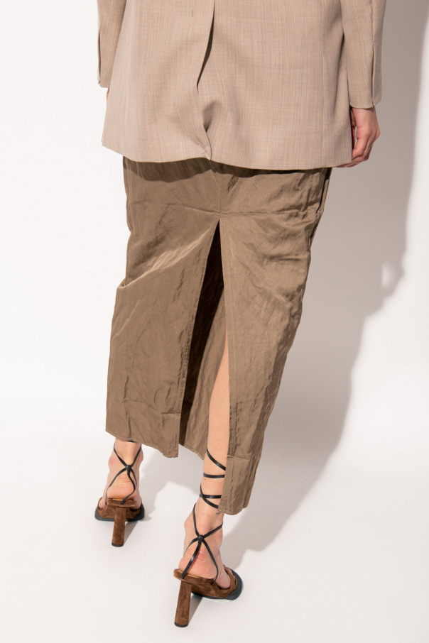 Light brown maxi skirt from Jacquemus. Crafted from a cotton blend, this style features a drawstring waist, a zipper with a hook & eye closure and a back slit for walking ease.