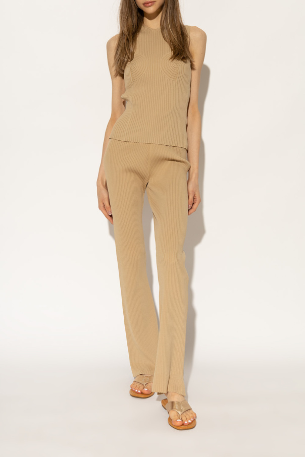 Gold-tone ‘Carey’ slides from UGG. Made of leather, this pair features a logo-engraved detail on the side and brown rubber sole.