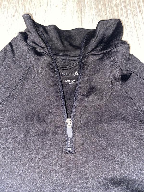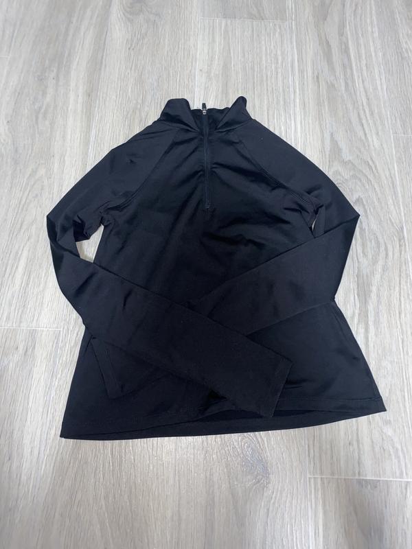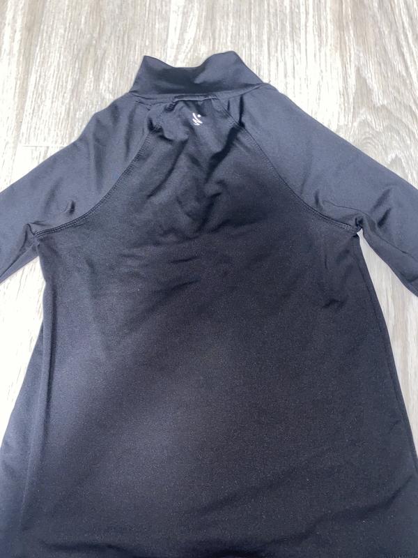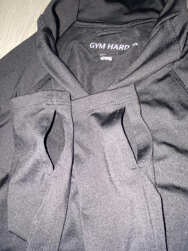 Спортивный лонг с вырезом для пальчика, также имеет застежку под шею