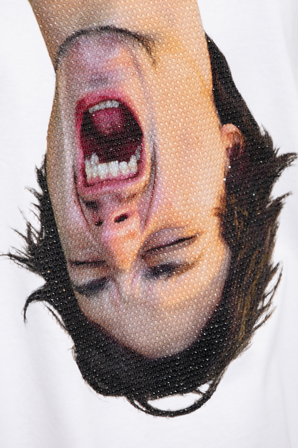 White T-shirt from Loewe. Made of cotton, this crew neck garment is decorated with a print embellished with crystals.